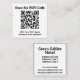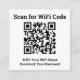 Scan for Hotel WiFi Code. Your Hotel WiFi QR Code and WiFi details on a square business card. Replace the QR Code shown with your own. Hotel guests can scan the WiFi code with their smartphone.