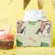 Cute Beagle with candy cane bones, presents, and a Santa hat on light green background.
