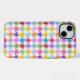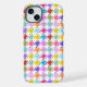 Houndstooth style surface pattern design in a bright mix of colours on a white background.