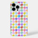 Houndstooth style surface pattern design in a bright mix of colours on a white background.