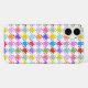 Houndstooth style surface pattern design in a bright mix of colours on a white background.