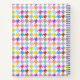 Houndstooth style surface pattern design in a bright mix of colours on a white background.