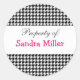 Black and white houndstooth personalised sticker, perfect for labelling books and school supplies!