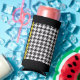 Elevate your drinking style with this striking black and white houndstooth patterned can cooler, accentuated with yellow Caution tape. Perfect for those who appreciate bold designs, this pattern oozes quirkiness with a modern twist while showcasing your unique taste.