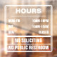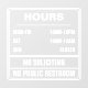 Hours of Operation No Soliciting Public Restroom Window Cling