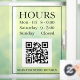 Hours Open Sign, QR Code, Message Black Text Window Cling