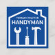 Modern simplistic but professional cover consisting of wrench, screwdriver and hammer in frame in shape of house. Ideal for handyman services, construction company, home repair and remodeling and more. Background colour is adjustable.