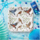Raise your space with this elegant square pattern with the Bunting birds of the Moroccan House (Emberiza sahari) perched and in flight among the green branches. The design beautifully captures the diversity of plumage and dynamic movements of this emblematic species, facing a transparent background for a versatile decor. Perfect for cushions, scarves and more, this motif celebrates the Moroccan fauna and its craft style.