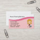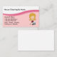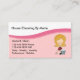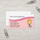 Colourful housekeeper business cards that include a cute cleaning lady symbol, pink background colour you can change, along with text template you can easily replace with your business information. Designed for a housekeeping service, general cleaning, or maid services.