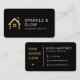 Black and gold professional business card for house cleaning services. Designed to present your cleaning business with a polished, trustworthy, and upscale look while clearly sharing contact details. Ideal for residential clients, referrals, real estate partners, and local marketing. Editable text. Clean print-ready layout.
