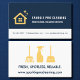 Promote your cleaning business with this elegant navy blue and gold business card featuring a professional cleaning logo design. The sleek, modern layout highlights your contact details and is perfect for house cleaners, maid services, and professional cleaning companies looking for a refined and trustworthy brand image.