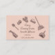 The cleaning service business card is decorated with gold-coloured cleaning supplies. Best for commercial or residential services for cleaning, housekeeper, maid service, home services, as well as janitorial supplies. florenceK design