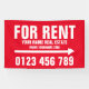Eye catching House for rent real estate banner sign with arrow. Create your own realty company road signage for open house, office suite sale, house viewing, foreclosure, land for sale, properties for lease, sold realestate, home for sale by owner etc. Personalizable template with modern typography. Turn arrow in left or right direction or leave out / delete. Double sided optional. Customisable background colour. ie red and white. Personalise with custom agency / property / broker name and phone number. Include your website address too. Change the quantity to get the cheapest price per sign. Available in small medium and large (extra big) size.