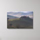 Canvas landscape print of a farmhouse in the morning fog at the break of dawn in Tuscany between the rolling hills of the Val d’Orcia valley between Pienza and San Quirico d’Orcia in Italy.