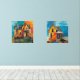 House made of a collage of pieces and textures, colourful and fun to watch.