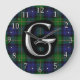 House of Gordon Letter G Monogram Clan Tartan Large Clock