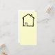 A house symbol in black. A black line illustration. This black house symbol is on a light yellow / cream colour.