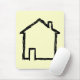 A house symbol in black. A black line illustration. This black house symbol is on a light yellow / cream colour.