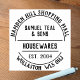 Household goods rubber stamp. Ironmongers rubber stamp. Housewares shop or Housewares Store Rubber Stamp. Company Name, Business type, plus Two Lines of Address in a circular effect. A business rubber stamp for all kinds of stationery items, envelopes, packages etc. Stamp your return address easily and stylishly.
