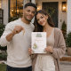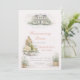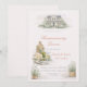 Modern housewarming dinner design featuring soft blush beige tones, sage greenery, and a detailed home illustration paired with olive oil, cheese, and wine accents. A refined layout suited for hosting an intimate dinner gathering in a warm, thoughtfully styled home setting.