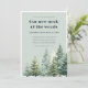 A modern woodland housewarming invitation with soft pine trees and the popular “Our New Neck of the Woods” theme, perfect for celebrating a new home in style.