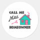 Housewarming party Call me Miss Homeowner Classic Round Sticker