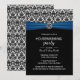 Housewarming Party Classic Blue Ribbon & Damask Invitation