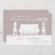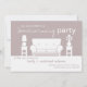 A housewarming party invitation featuring an illustration of a white living room complete with sofa with end tables on each side. End tables hold a lamp and a vase of flowers. Background colour and text colour is customisable.