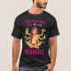 I give wanted to give this a 4 instead of a 5 because these Basic DARK T0shirts run unexpectedly SLIM or Narrow. Which is great if you do not have a potbelly, but I have a paunch. It isn't the shirt's fault that I've got a beer belly. The design and shirt itself is a quality cotton shirt. The color is more of a deep purple, but still a very pretty color. The Basic DARK T-shirts run a bit SLIMMER than the Basic Ts. The neck is a fraction narrower (or seems to be narrower) also. I'm a paunchy middle-aged woman and my neck is 12 inches (31cm) thick and the neckline fell about the same as in the photo of the man, and I had the desire to tug it a bit. So if you're a thick necked man or like loose shirts, be aware these are slimmer shirts. Once I get rid of my lockdown paunch it'll look great. The shirt washed well in cold water with no apparent bleeding. We don't have a dryer, so it hung dry. Did not shrink. Love the colors and the design. The design looks smaller on my shirt than it does on the model on-line. But still, it looks good on the shirt. The printing looks as it does on the model, just the size seems fractionally smaller. Washed garment in cold water, hung dry and design appeared unaffected.