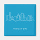 This design features a sketch of the Houston Texas skyline on a brown background.