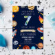 This is a Houston We Have A 7 Year Old Outer Space Blue 7th Birthday Party Invitation!
