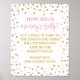 HOW BIG IS MOMMY'S BELLY? baby shower game sign featuring a beautiful pink & gold glitter confetti design.