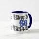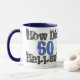 60th birthday gift. Sixty years old. How Did 60 Happen? is the bold graphic message on this blue and white mug.