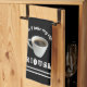 For the serious coffee drinkers, this design says it all. How do I take my coffee? SERIOUSLY! In the centre of the design there's a steaming hot cup, of black coffee. At the bottom of the design there are two ruled lines. This design is at the topped bottom of the dish towel. The background colour can be changed.