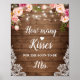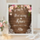How Many Kisses Rustic Pink Floral Bridal Shower Game Sign Poster.