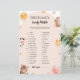 This adorable baby shower game card features a charming farm animal theme with cute illustrations of a cow, bunny, chick, horse, and pig, surrounded by cheerful flowers and a smiling sun. The soft pastel colours and whimsical design create a warm and inviting atmosphere. Visit our shop to view our entire Brown Cute Farm Animal collection.