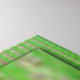 A macro shot of a flower of grass sprinkled with water droplets, the seeds turning the tip purple against a backdrop of rich green. Framing the photo is a glass mosaic of the field around it.