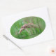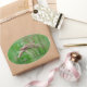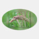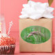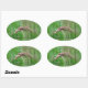A macro shot of a flower of grass sprinkled with water droplets, the seeds turning the tip purple against a backdrop of rich green. Framing the photo is a glass mosaic of the field around it.