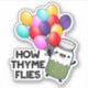 How Thyme Flies Funny Herb Pun features a cute bottle of thyme flying off with colourful balloons . Perfect pun gift for family and friends who love cute herb thyme puns.
