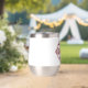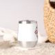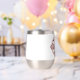 This cute wine glass tumbler has a funny red logo with two wine glasses and the text "Surviving MOTHERHOOD one sip at a time." She will love it! Her name or monogram is in matching red at one side.