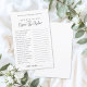 Simple Minimalist Bridal Shower Game – How Well Do You Know the Bride? Guests answer a series of questions to see how well they know the bride, adding a fun and engaging activity to the celebration. The design has a white background for a clean and simple minimalist look. While the fonts are in dark gray, it gives an overall black and white appearance with an elegant softer touch. The mix of handwritten script and classic serif fonts keeps the style timeless and chic. Fully customizable, you can edit the questions, font colors, and background to match your bridal shower theme.