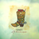 This cowboy boot is all dressed up for the holiday season with a string of lights wrapped around it and the spur replaced with a jingle bell. It's a festive and western way to celebrate the holiday. Background features sparkles and snowflakes with the words Howdy Holidays at the bottom. The boot is stuffed with a gift and candy cane. Matching products available.