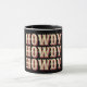 Retro style cowboy "Howdy Howdy Howdy" text design with striped letters in yellow, red and beige colours