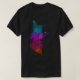 I give wanted to give this a 4 instead of a 5 because these Basic DARK T0shirts run unexpectedly SLIM or Narrow. Which is great if you do not have a potbelly, but I have a paunch. It isn't the shirt's fault that I've got a beer belly. The design and shirt itself is a quality cotton shirt. The color is more of a deep purple, but still a very pretty color. The Basic DARK T-shirts run a bit SLIMMER than the Basic Ts. The neck is a fraction narrower (or seems to be narrower) also. I'm a paunchy middle-aged woman and my neck is 12 inches (31cm) thick and the neckline fell about the same as in the photo of the man, and I had the desire to tug it a bit. So if you're a thick necked man or like loose shirts, be aware these are slimmer shirts. Once I get rid of my lockdown paunch it'll look great. The shirt washed well in cold water with no apparent bleeding. We don't have a dryer, so it hung dry. Did not shrink. Love the colors and the design. The design looks smaller on my shirt than it does on the model on-line. But still, it looks good on the shirt. The printing looks as it does on the model, just the size seems fractionally smaller. Washed garment in cold water, hung dry and design appeared unaffected.