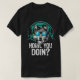 I give wanted to give this a 4 instead of a 5 because these Basic DARK T0shirts run unexpectedly SLIM or Narrow. Which is great if you do not have a potbelly, but I have a paunch. It isn't the shirt's fault that I've got a beer belly. The design and shirt itself is a quality cotton shirt. The color is more of a deep purple, but still a very pretty color. The Basic DARK T-shirts run a bit SLIMMER than the Basic Ts. The neck is a fraction narrower (or seems to be narrower) also. I'm a paunchy middle-aged woman and my neck is 12 inches (31cm) thick and the neckline fell about the same as in the photo of the man, and I had the desire to tug it a bit. So if you're a thick necked man or like loose shirts, be aware these are slimmer shirts. Once I get rid of my lockdown paunch it'll look great. The shirt washed well in cold water with no apparent bleeding. We don't have a dryer, so it hung dry. Did not shrink. Love the colors and the design. The design looks smaller on my shirt than it does on the model on-line. But still, it looks good on the shirt. The printing looks as it does on the model, just the size seems fractionally smaller. Washed garment in cold water, hung dry and design appeared unaffected.