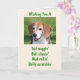 This card is great fun and good quality. I loved the humour inside and on the back. There is the opportunity to change the orientation of this card from landscape to portrait, which I did. It is relatively straightforward to amend the typeface to fit the new orientation. It was well packaged with no plastic. The printing on this card is excellent.