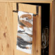 Original fine art design of three Basset hounds by artist Carolyn McFann printed on a quality, machine-washable American Mojo kitchen towel for dog lovers.