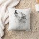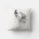 Howling Grey Wolf in Watercolor Painting Style Throw Pillow.