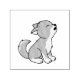 Cute cartoon wolf pup is sitting on its haunches and howls with its head up.