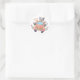 Crafted with high-quality materials, this classic round sticker features a vibrant image of a cute grey wolf, joyfully howling against a backdrop of a colourful florals and a cute little car. The wolf's expressive eyes and detailed fur make it an eye-catching addition to any surface. Its circular shape adds a touch of uniqueness and versatility to its usage.